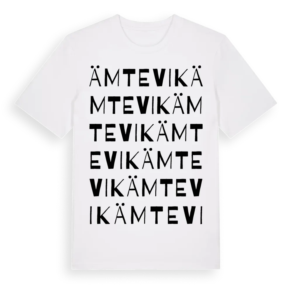 Ämtevik ordlek t-shirt är inspirerad av byn Ämtevik i Östergötlands län, Sverige. Tröjan är designad för dig som har en speciell koppling till platsen – oavsett om du bor här, har rötterna här eller bara älskar Ämtevik.