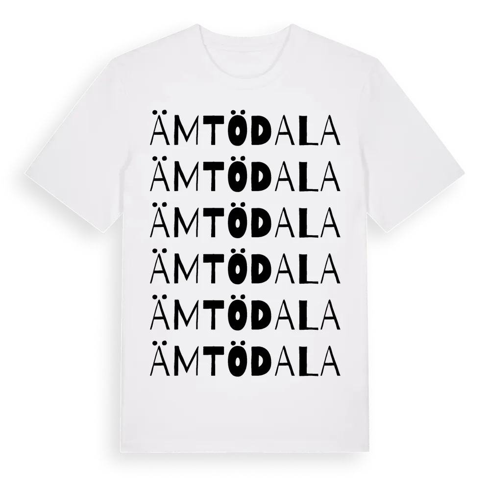 Ämtödala ordlek t-shirt är inspirerad av Ämtödala i Östergötlands län, Sverige. Tröjan är designad för dig som har en speciell koppling till platsen – oavsett om du bor här, har rötterna här eller bara älskar Ämtödala.