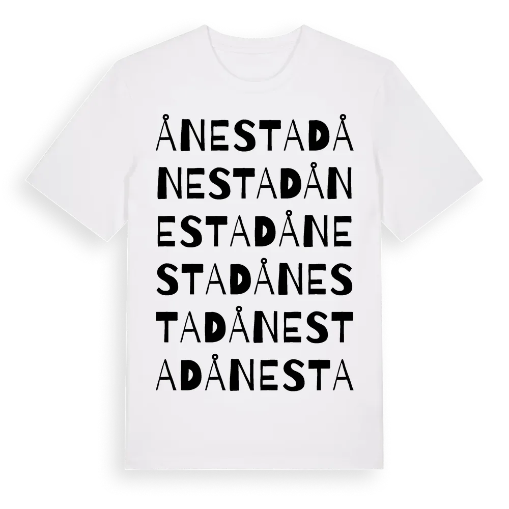 Ånestad ordlek t-shirt är inspirerad av byn Ånestad i Östergötlands län, Sverige. Tröjan är designad för dig som har en speciell koppling till platsen – oavsett om du bor här, har rötterna här eller bara älskar Ånestad.