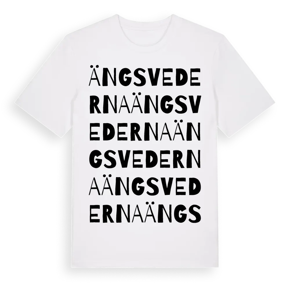 Ängsvederna ordlek t-shirt är inspirerad av Ängsvederna i Östergötlands län, Sverige. Tröjan är designad för dig som har en speciell koppling till platsen – oavsett om du bor här, har rötterna här eller bara älskar Ängsvederna.