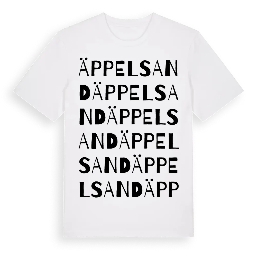Äppelsand ordlek t-shirt är inspirerad av byn Äppelsand i Östergötlands län, Sverige. Tröjan är designad för dig som har en speciell koppling till platsen – oavsett om du bor här, har rötterna här eller bara älskar Äppelsand.