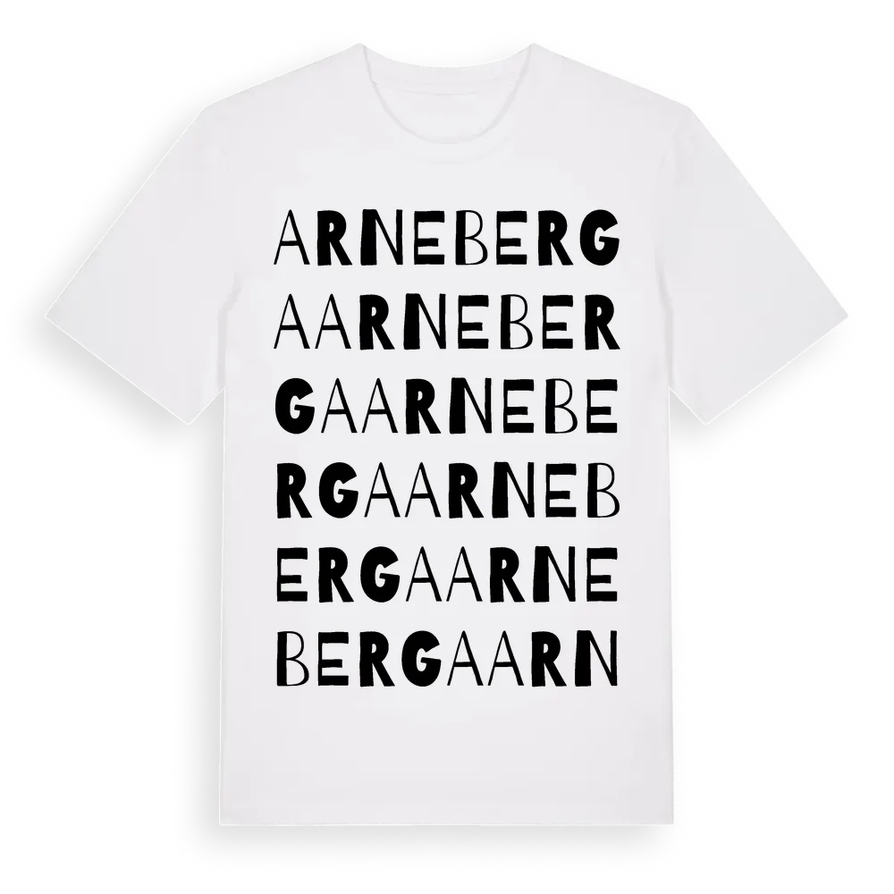 Arneberga ordlek t-shirt är inspirerad av Arneberga i Östergötlands län, Sverige. Tröjan är designad för dig som har en speciell koppling till platsen – oavsett om du bor här, har rötterna här eller bara älskar Arneberga.