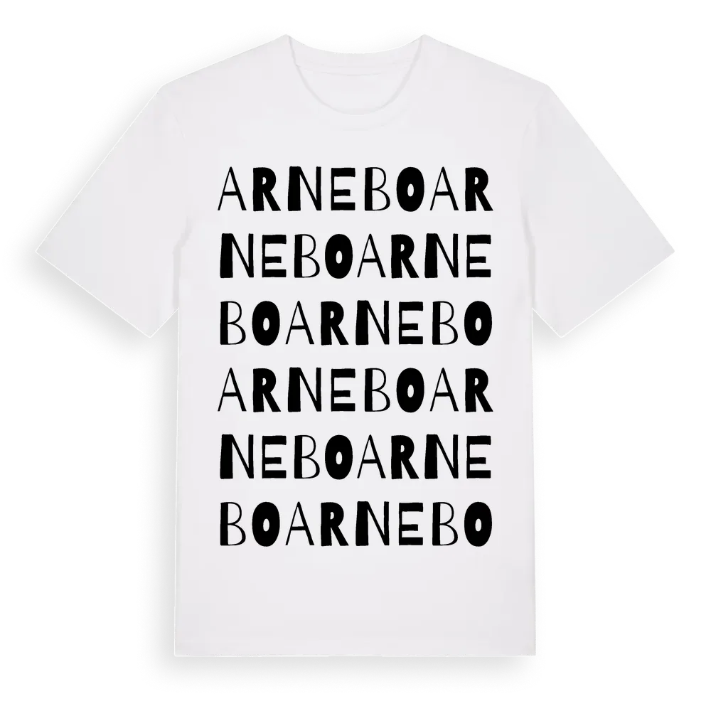 Arnebo ordlek t-shirt är inspirerad av byn Arnebo i Östergötlands län, Sverige. Tröjan är designad för dig som har en speciell koppling till platsen – oavsett om du bor här, har rötterna här eller bara älskar Arnebo.