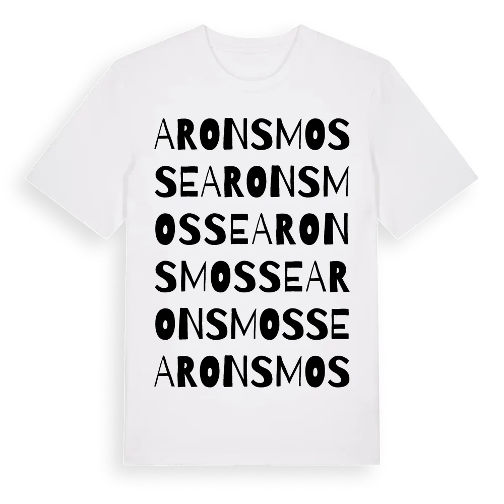 Arons Mosse ordlek t-shirt är inspirerad av Arons Mosse i Östergötlands län, Sverige. Tröjan är designad för dig som har en speciell koppling till platsen – oavsett om du bor här, har rötterna här eller bara älskar Arons Mosse.