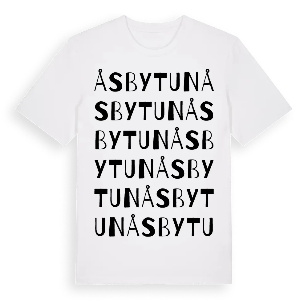 Åsbytun ordlek t-shirt är inspirerad av Åsbytun i Östergötlands län, Sverige. Tröjan är designad för dig som har en speciell koppling till platsen – oavsett om du bor här, har rötterna här eller bara älskar Åsbytun.