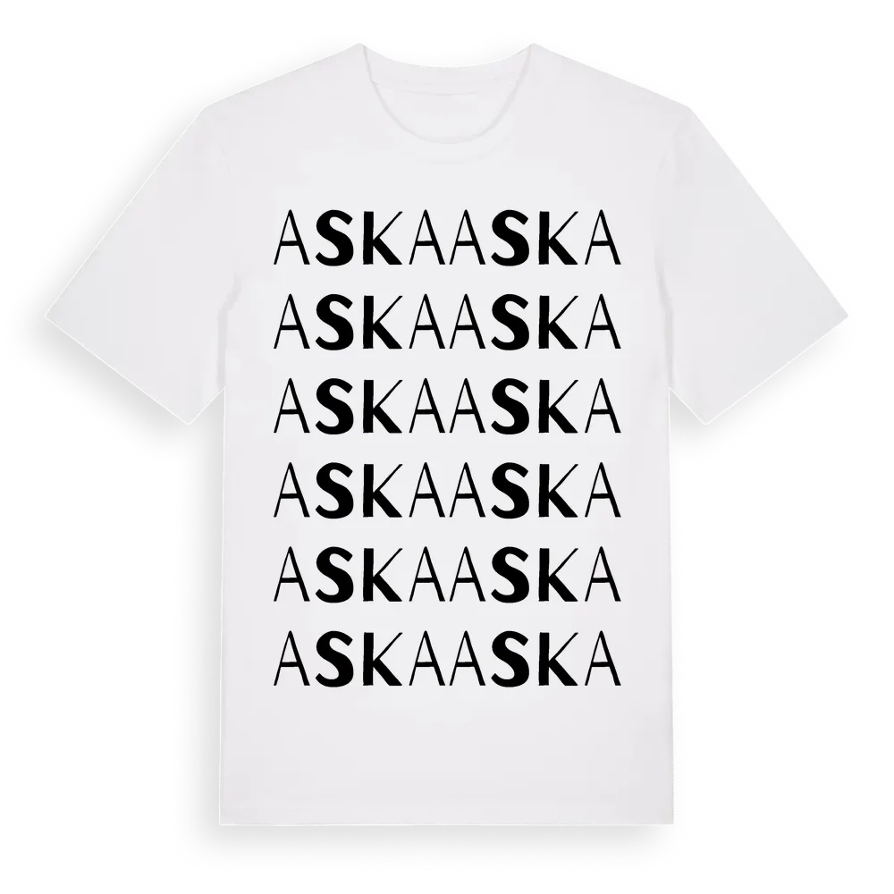 Aska ordlek t-shirt är inspirerad av byn Aska i Östergötlands län, Sverige. Tröjan är designad för dig som har en speciell koppling till platsen – oavsett om du bor här, har rötterna här eller bara älskar Aska.
