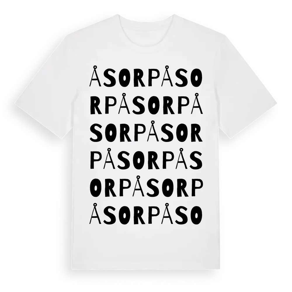 Åsorp ordlek t-shirt är inspirerad av byn Åsorp i Östergötlands län, Sverige. Tröjan är designad för dig som har en speciell koppling till platsen – oavsett om du bor här, har rötterna här eller bara älskar Åsorp.