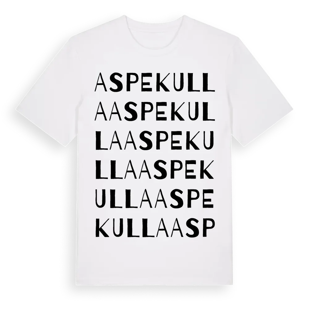 Aspekulla ordlek t-shirt är inspirerad av byn Aspekulla i Östergötlands län, Sverige. Tröjan är designad för dig som har en speciell koppling till platsen – oavsett om du bor här, har rötterna här eller bara älskar Aspekulla.