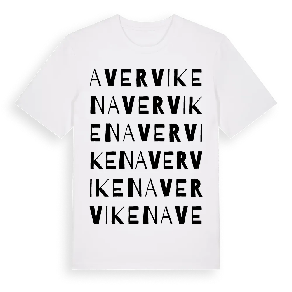 En ordlek byggd på Avervikens namn. Subtilt och klurig – ett motiv som bara de som verkligen känner platsen fullt ut förstår. Premium bomull, unisex – från Averviken i Östergötlands län.