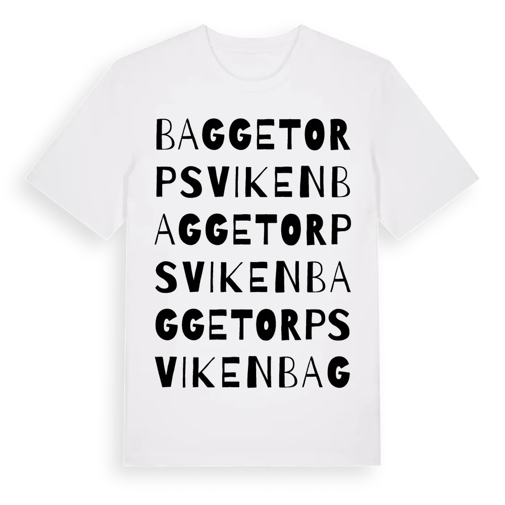 Baggetorpsviken ordlek t-shirt är inspirerad av Baggetorpsviken i Östergötlands län, Sverige. Tröjan är designad för dig som har en speciell koppling till platsen – oavsett om du bor här, har rötterna här eller bara älskar Baggetorpsviken.