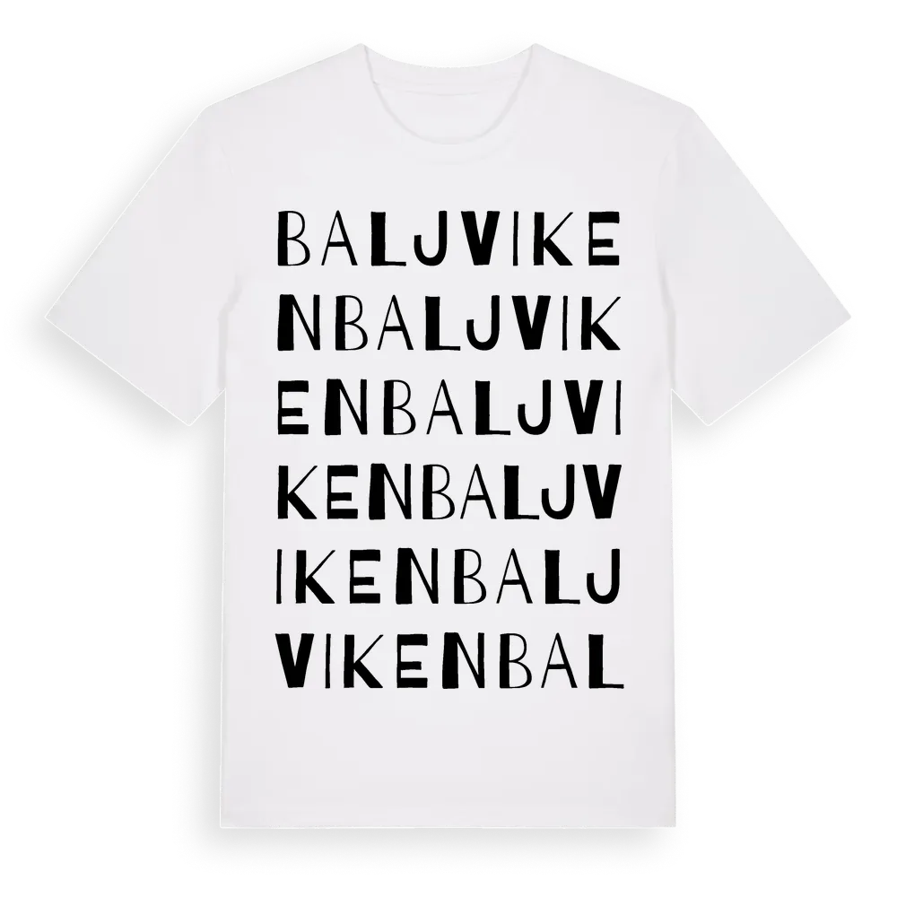 Baljviken ordlek t-shirt är inspirerad av Baljviken i Östergötlands län, Sverige. Tröjan är designad för dig som har en speciell koppling till platsen – oavsett om du bor här, har rötterna här eller bara älskar Baljviken.