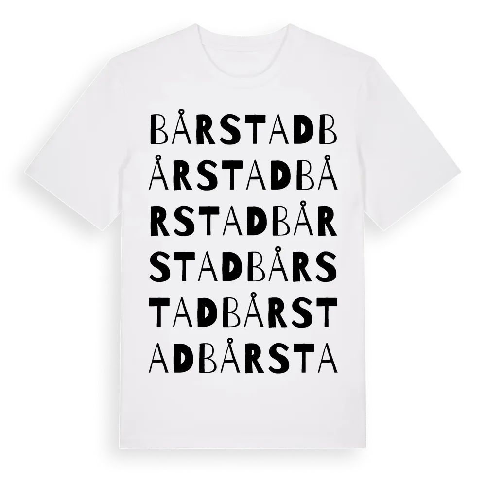 Bårstad ordlek t-shirt är inspirerad av Bårstad i Östergötlands län, Sverige. Tröjan är designad för dig som har en speciell koppling till platsen – oavsett om du bor här, har rötterna här eller bara älskar Bårstad.