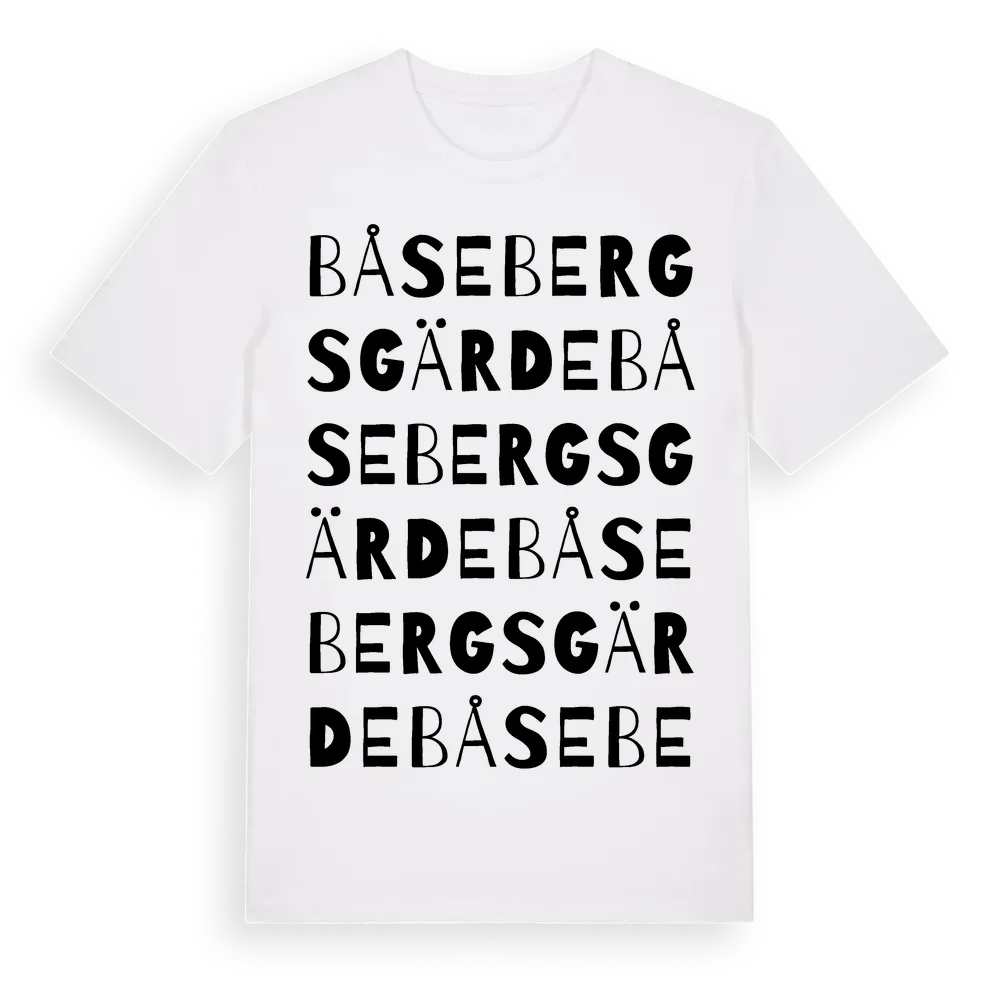 Båsebergsgärde ordlek t-shirt är inspirerad av Båsebergsgärde i Östergötlands län, Sverige. Tröjan är designad för dig som har en speciell koppling till platsen – oavsett om du bor här, har rötterna här eller bara älskar Båsebergsgärde.