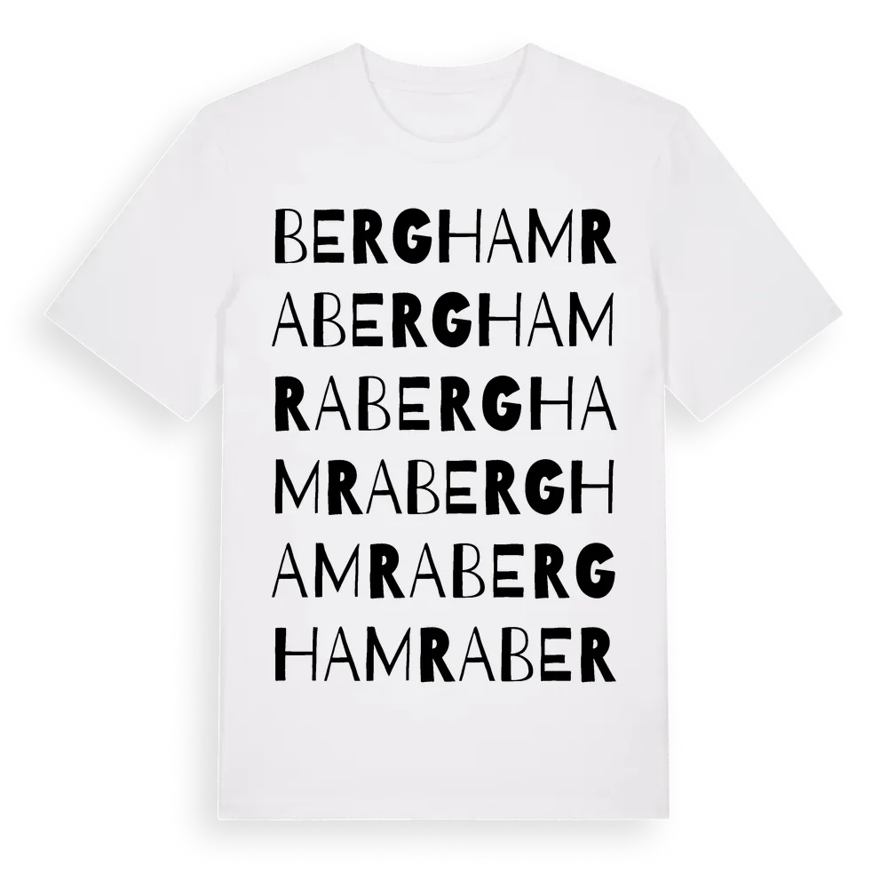 Berghamra ordlek t-shirt är inspirerad av Berghamra i Östergötlands län, Sverige. Tröjan är designad för dig som har en speciell koppling till platsen – oavsett om du bor här, har rötterna här eller bara älskar Berghamra.