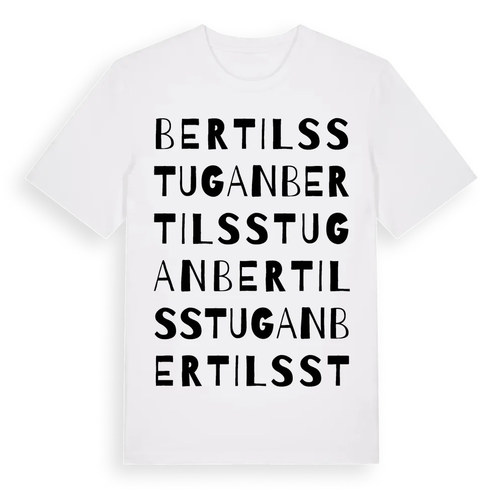 Bertilsstugan ordlek t-shirt är inspirerad av Bertilsstugan i Östergötlands län, Sverige. Tröjan är designad för dig som har en speciell koppling till platsen – oavsett om du bor här, har rötterna här eller bara älskar Bertilsstugan.