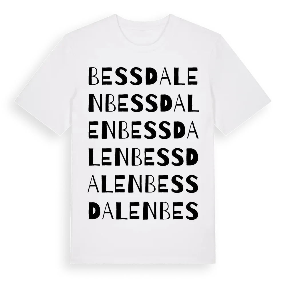 En ordlek byggd på Bessdalens namn. Subtilt och klurig – ett motiv som bara de som verkligen känner platsen fullt ut förstår. Premium bomull, unisex – från Bessdalen i Östergötlands län.