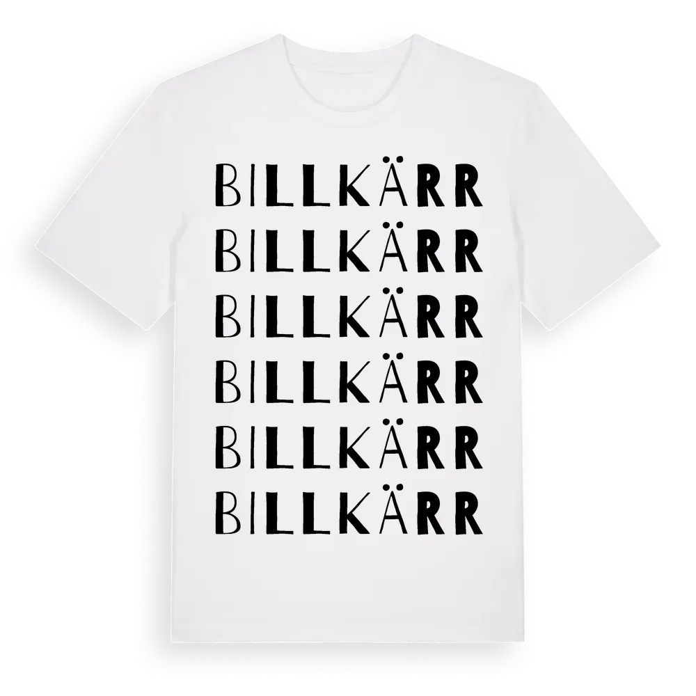 Billkärr ordlek t-shirt är inspirerad av Billkärr i Östergötlands län, Sverige. Tröjan är designad för dig som har en speciell koppling till platsen – oavsett om du bor här, har rötterna här eller bara älskar Billkärr.