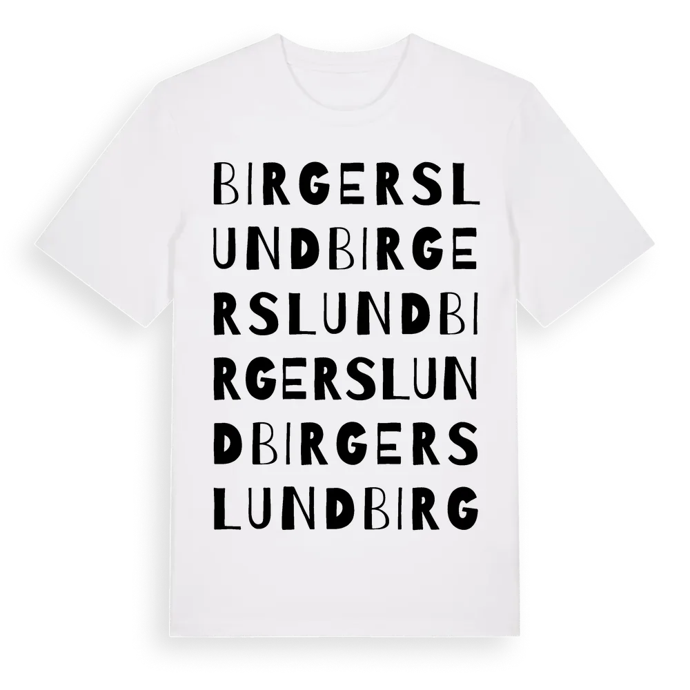 Birgerslund ordlek t-shirt är inspirerad av Birgerslund i Östergötlands län, Sverige. Tröjan är designad för dig som har en speciell koppling till platsen – oavsett om du bor här, har rötterna här eller bara älskar Birgerslund.