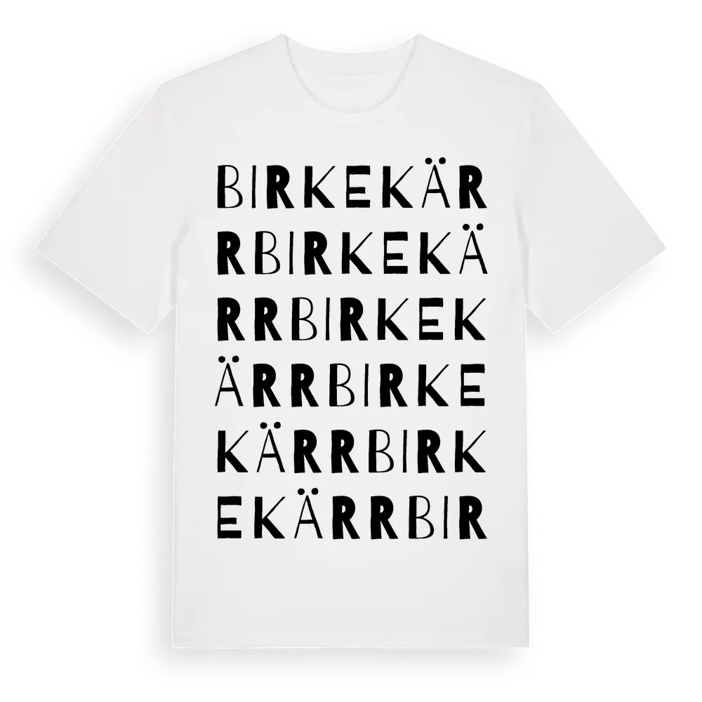 Birkekärr ordlek t-shirt är inspirerad av byn Birkekärr i Östergötlands län, Sverige. Tröjan är designad för dig som har en speciell koppling till platsen – oavsett om du bor här, har rötterna här eller bara älskar Birkekärr.