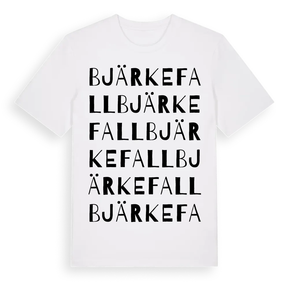 Bjärkefall ordlek t-shirt är inspirerad av byn Bjärkefall i Östergötlands län, Sverige. Tröjan är designad för dig som har en speciell koppling till platsen – oavsett om du bor här, har rötterna här eller bara älskar Bjärkefall.