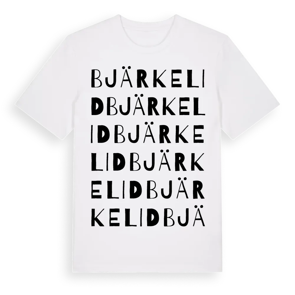 Bjärkelid ordlek t-shirt är inspirerad av Bjärkelid i Östergötlands län, Sverige. Tröjan är designad för dig som har en speciell koppling till platsen – oavsett om du bor här, har rötterna här eller bara älskar Bjärkelid.