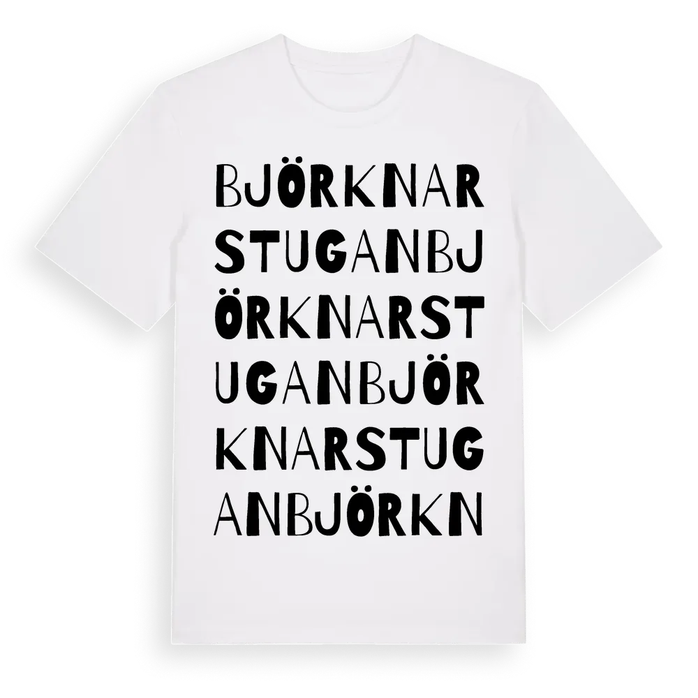 Björknarstugan ordlek t-shirt är inspirerad av Björknarstugan i Östergötlands län, Sverige. Tröjan är designad för dig som har en speciell koppling till platsen – oavsett om du bor här, har rötterna här eller bara älskar Björknarstugan.