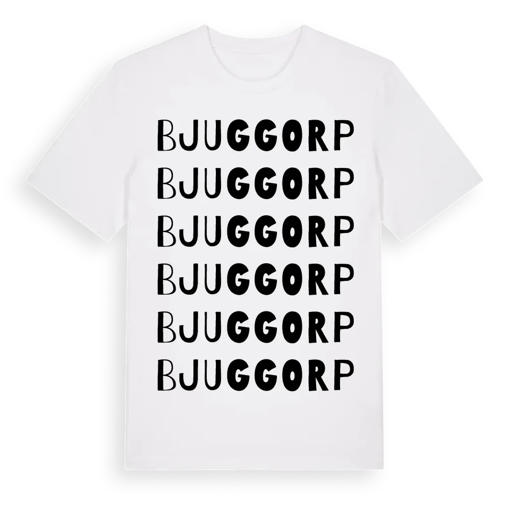 Bjuggorp ordlek t-shirt är inspirerad av Bjuggorp i Östergötlands län, Sverige. Tröjan är designad för dig som har en speciell koppling till platsen – oavsett om du bor här, har rötterna här eller bara älskar Bjuggorp.