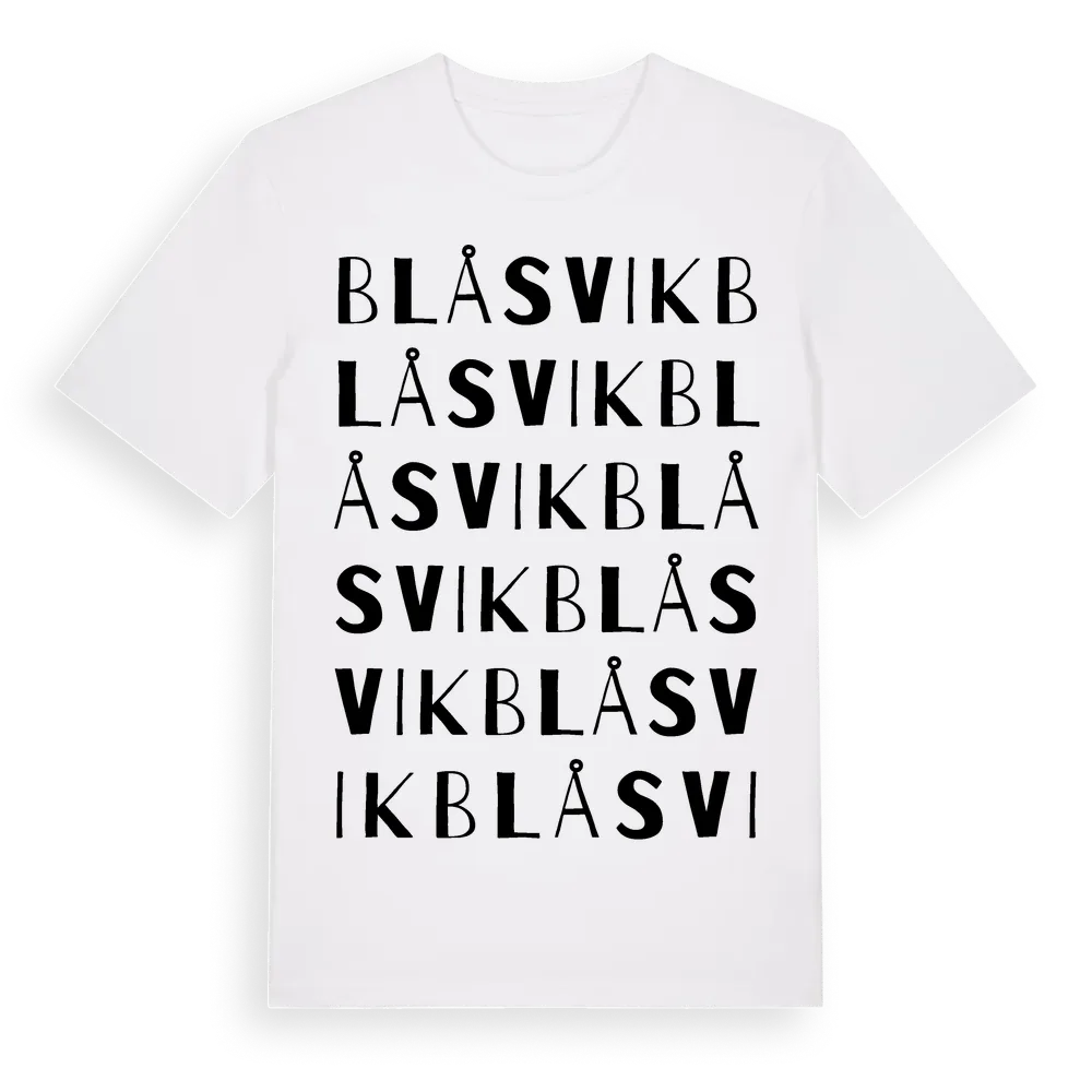 Blåsvik ordlek t-shirt är inspirerad av Blåsvik i Östergötlands län, Sverige. Tröjan är designad för dig som har en speciell koppling till platsen – oavsett om du bor här, har rötterna här eller bara älskar Blåsvik.