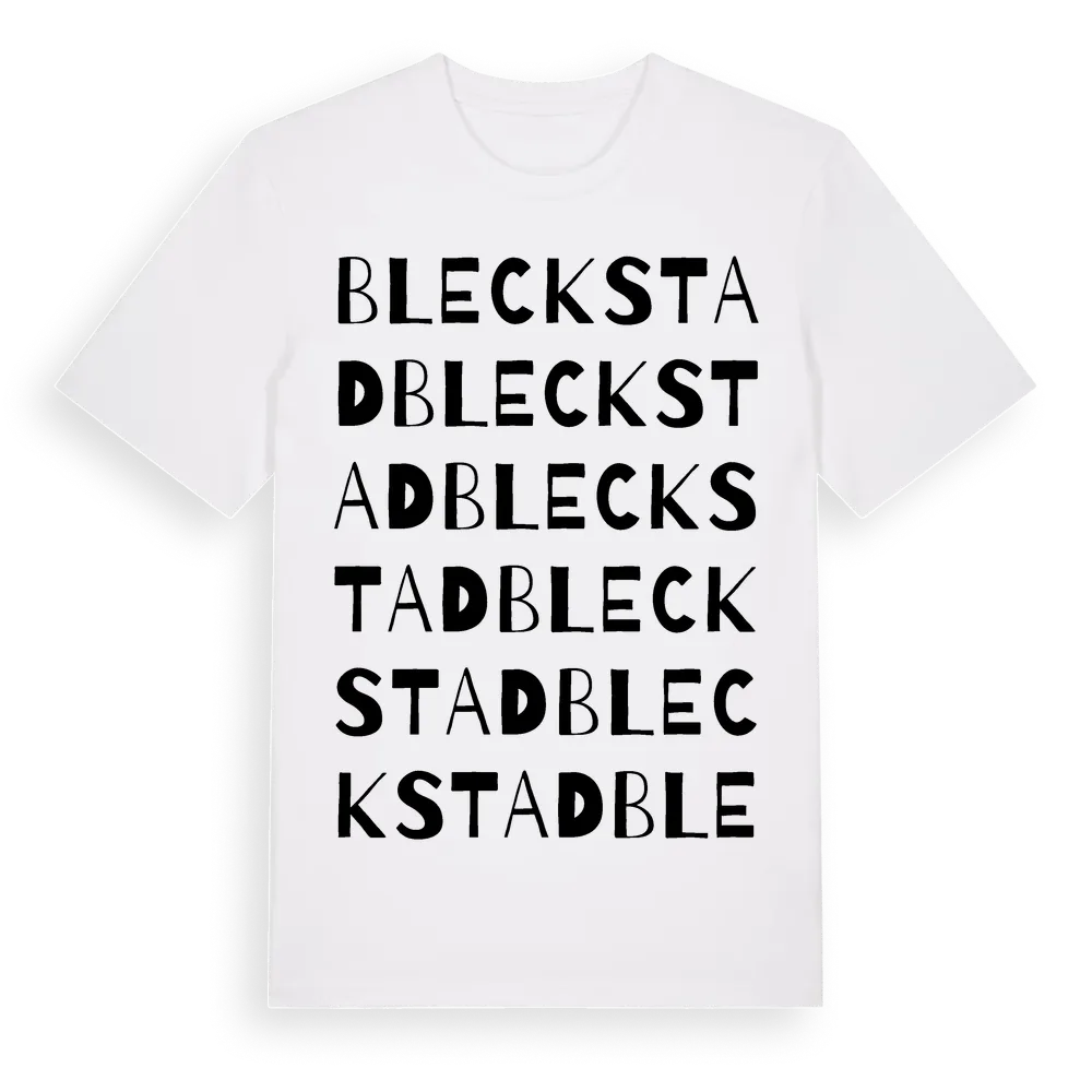 Bleckstad ordlek t-shirt är inspirerad av byn Bleckstad i Östergötlands län, Sverige. Tröjan är designad för dig som har en speciell koppling till platsen – oavsett om du bor här, har rötterna här eller bara älskar Bleckstad.