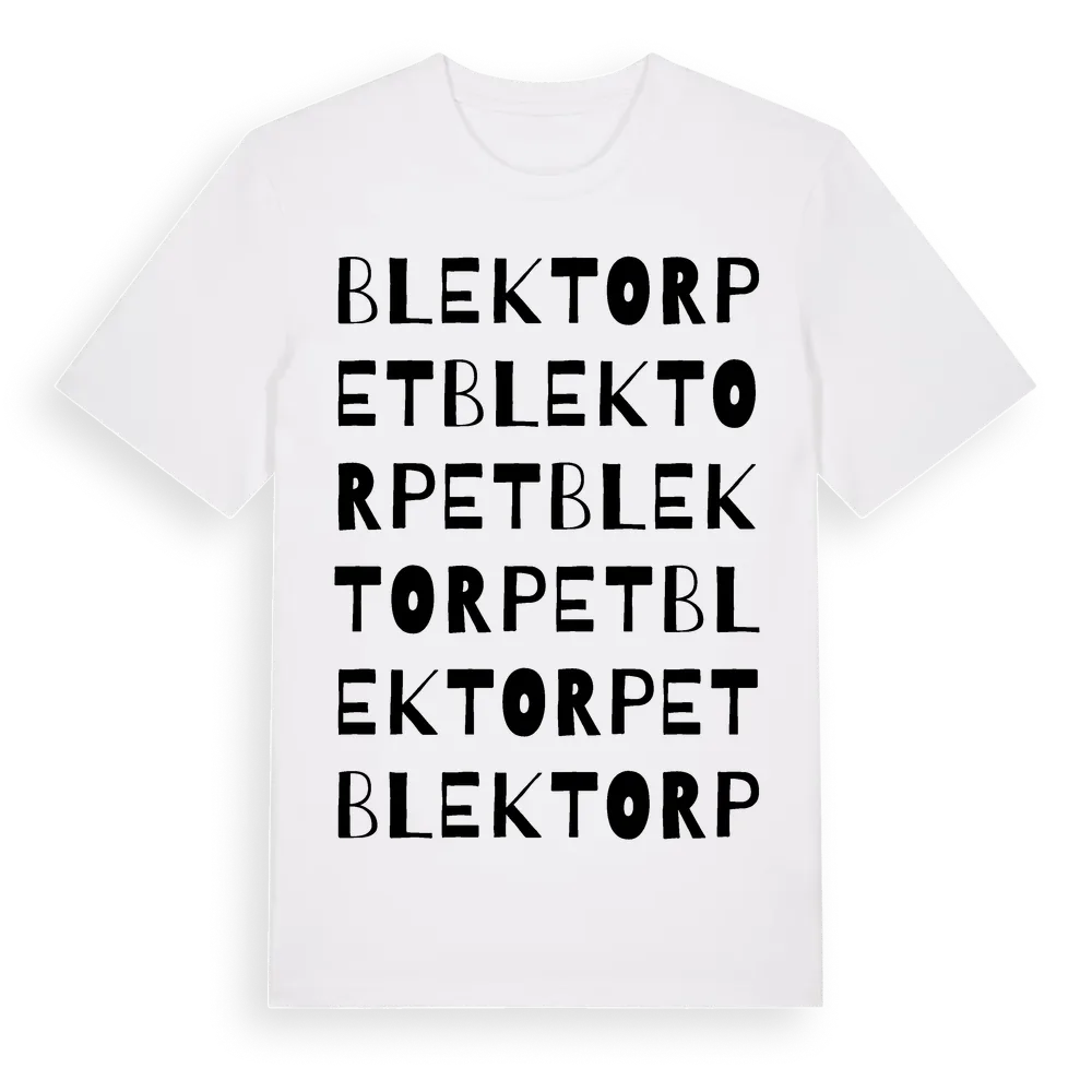 Blektorpet ordlek t-shirt är inspirerad av Blektorpet i Östergötlands län, Sverige. Tröjan är designad för dig som har en speciell koppling till platsen – oavsett om du bor här, har rötterna här eller bara älskar Blektorpet.