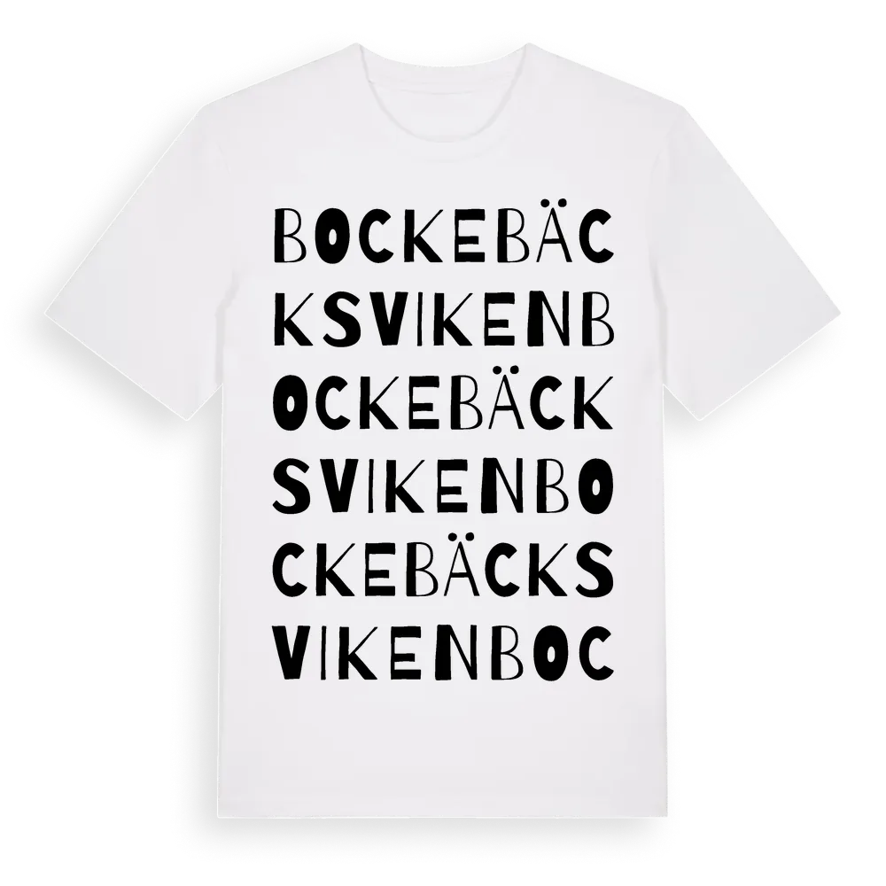 Bockebäcksviken ordlek t-shirt är inspirerad av Bockebäcksviken i Östergötlands län, Sverige. Tröjan är designad för dig som har en speciell koppling till platsen – oavsett om du bor här, har rötterna här eller bara älskar Bockebäcksviken.