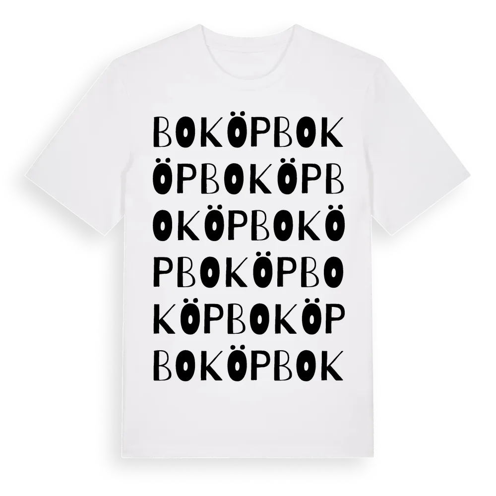 Boköp ordlek t-shirt är inspirerad av Boköp i Östergötlands län, Sverige. Tröjan är designad för dig som har en speciell koppling till platsen – oavsett om du bor här, har rötterna här eller bara älskar Boköp.