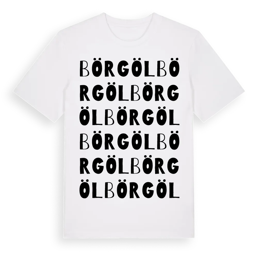 Börgöl ordlek t-shirt är inspirerad av byn Börgöl i Östergötlands län, Sverige. Tröjan är designad för dig som har en speciell koppling till platsen – oavsett om du bor här, har rötterna här eller bara älskar Börgöl.