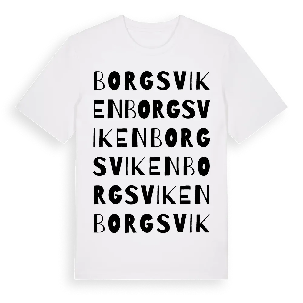 Borgsviken ordlek t-shirt är inspirerad av Borgsviken i Östergötlands län, Sverige. Tröjan är designad för dig som har en speciell koppling till platsen – oavsett om du bor här, har rötterna här eller bara älskar Borgsviken.