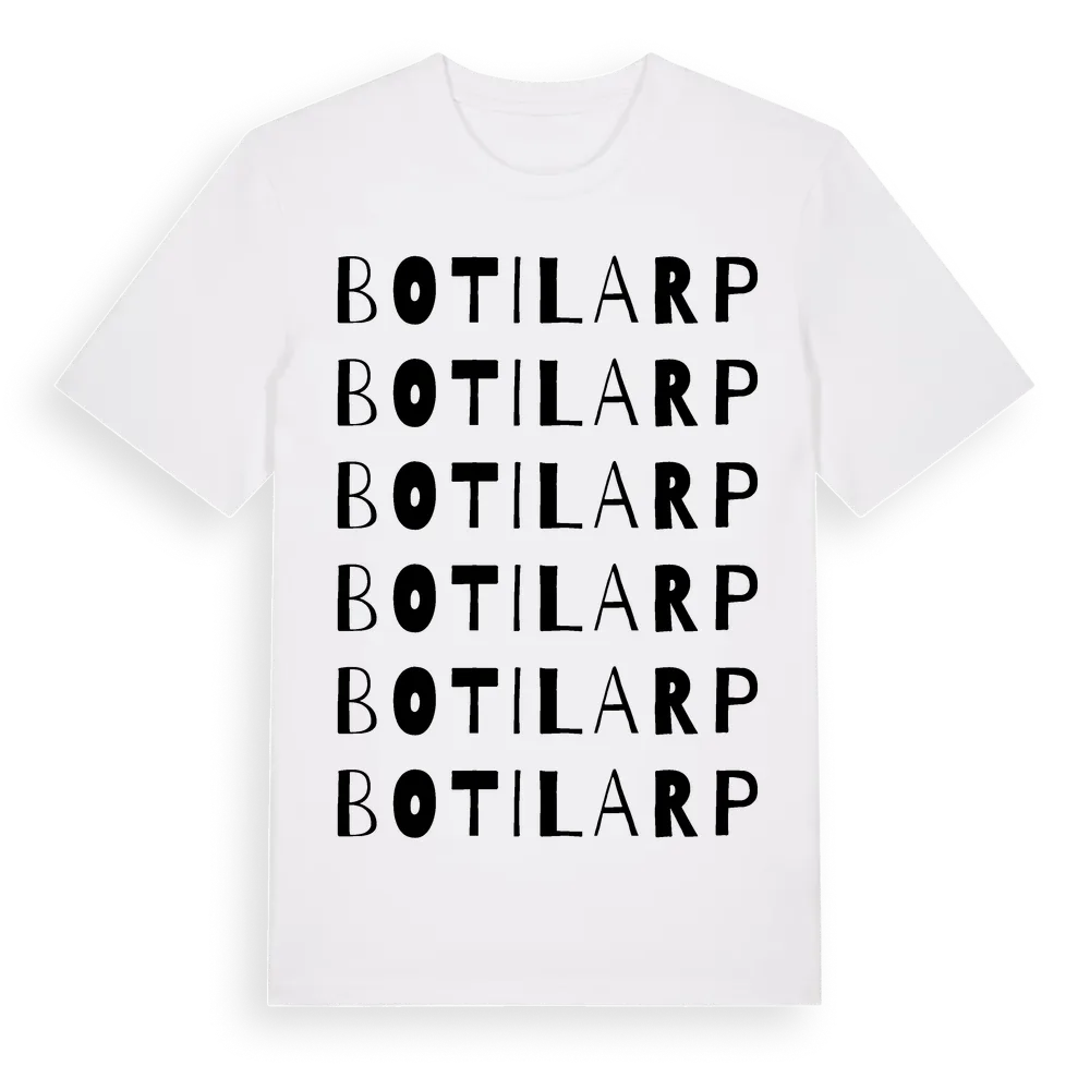 Botilarp ordlek t-shirt är inspirerad av Botilarp i Östergötlands län, Sverige. Tröjan är designad för dig som har en speciell koppling till platsen – oavsett om du bor här, har rötterna här eller bara älskar Botilarp.