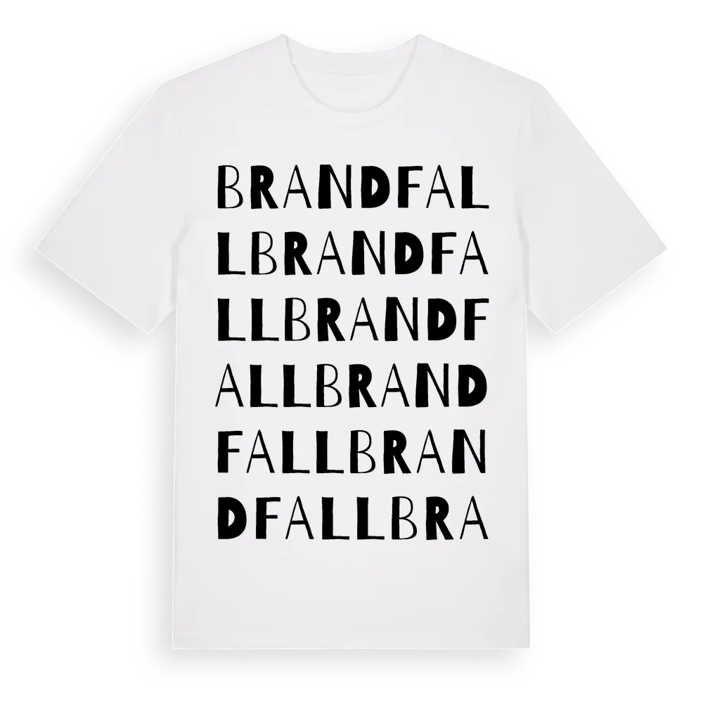 Brandfall ordlek t-shirt är inspirerad av Brandfall i Östergötlands län, Sverige. Tröjan är designad för dig som har en speciell koppling till platsen – oavsett om du bor här, har rötterna här eller bara älskar Brandfall.