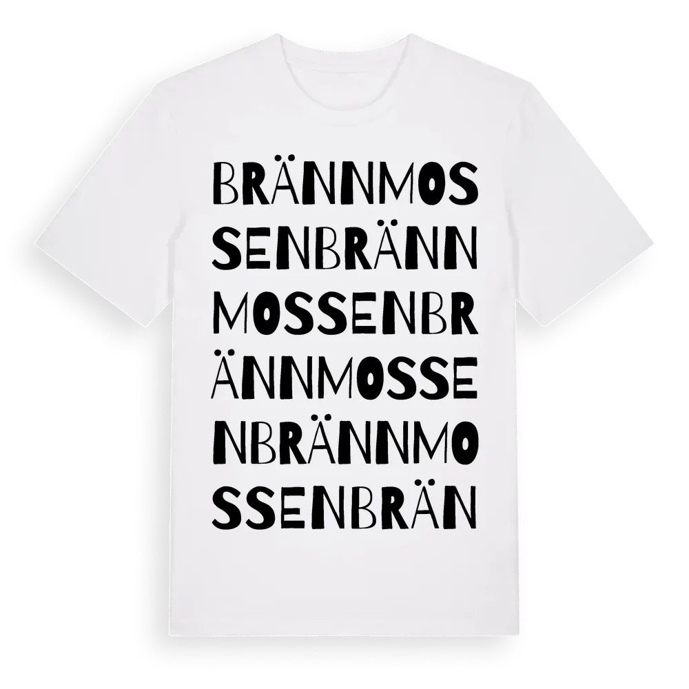 Brännmossen ordlek t-shirt är inspirerad av Brännmossen i Östergötlands län, Sverige. Tröjan är designad för dig som har en speciell koppling till platsen – oavsett om du bor här, har rötterna här eller bara älskar Brännmossen.