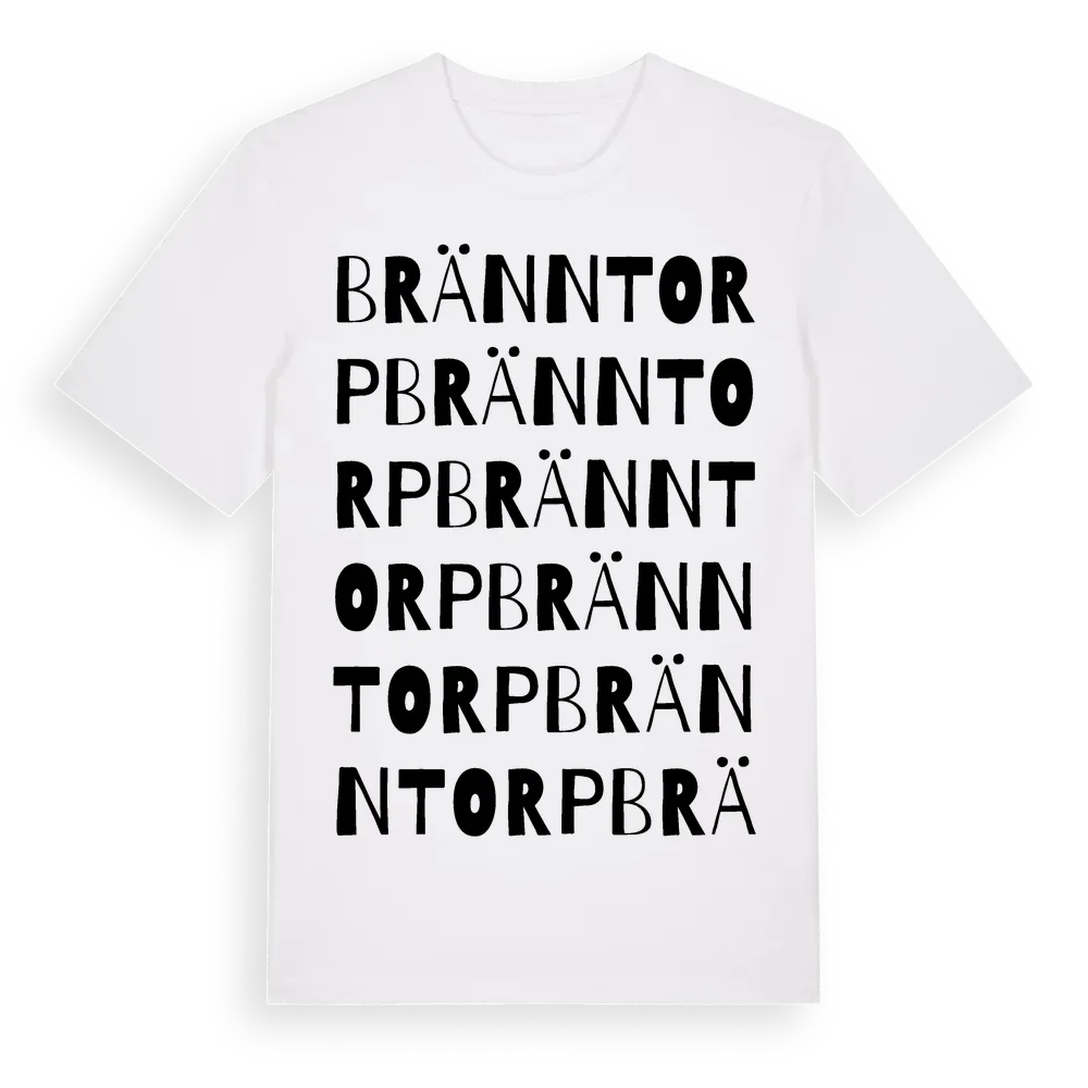 Bränntorp ordlek t-shirt är inspirerad av byn Bränntorp i Östergötlands län, Sverige. Tröjan är designad för dig som har en speciell koppling till platsen – oavsett om du bor här, har rötterna här eller bara älskar Bränntorp.