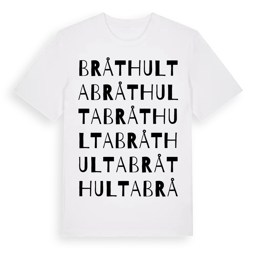 Bråthulta ordlek t-shirt är inspirerad av Bråthulta i Östergötlands län, Sverige. Tröjan är designad för dig som har en speciell koppling till platsen – oavsett om du bor här, har rötterna här eller bara älskar Bråthulta.