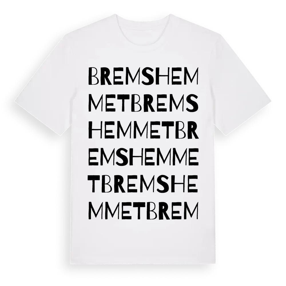 Bremshemmet ordlek t-shirt är inspirerad av Bremshemmet i Östergötlands län, Sverige. Tröjan är designad för dig som har en speciell koppling till platsen – oavsett om du bor här, har rötterna här eller bara älskar Bremshemmet.