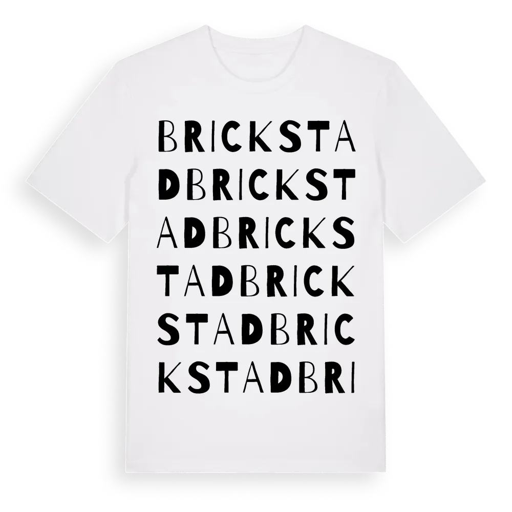 Brickstad ordlek t-shirt är inspirerad av byn Brickstad i Östergötlands län, Sverige. Tröjan är designad för dig som har en speciell koppling till platsen – oavsett om du bor här, har rötterna här eller bara älskar Brickstad.