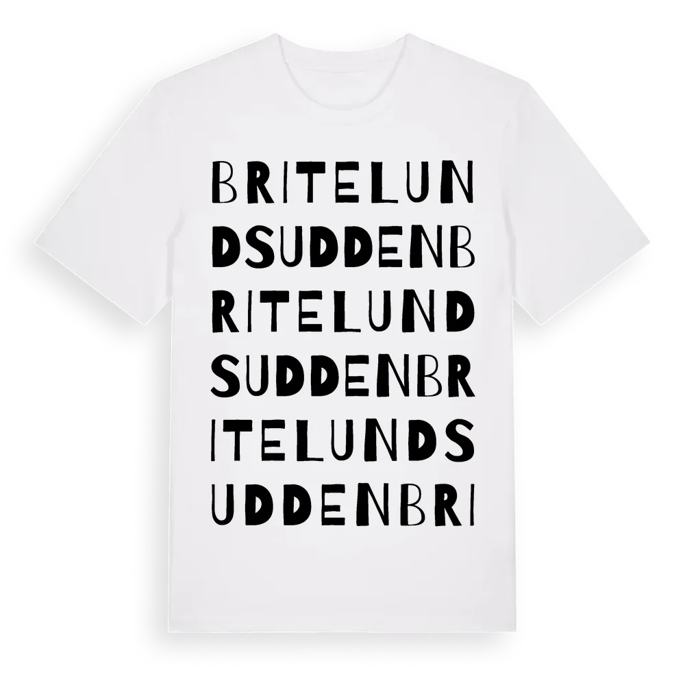 Britelundsudden ordlek t-shirt är inspirerad av Britelundsudden i Östergötlands län, Sverige. Tröjan är designad för dig som har en speciell koppling till platsen – oavsett om du bor här, har rötterna här eller bara älskar Britelundsudden.