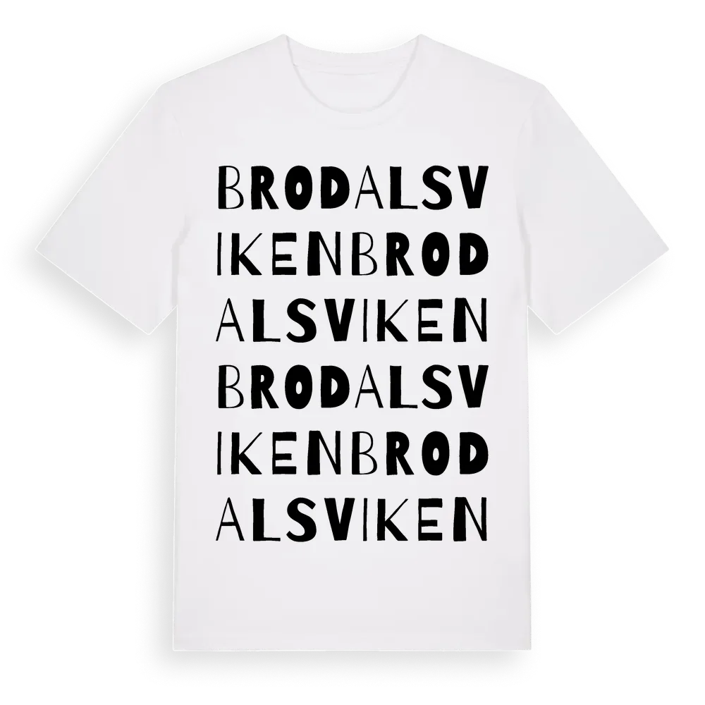 Brodalsviken ordlek t-shirt är inspirerad av Brodalsviken i Östergötlands län, Sverige. Tröjan är designad för dig som har en speciell koppling till platsen – oavsett om du bor här, har rötterna här eller bara älskar Brodalsviken.