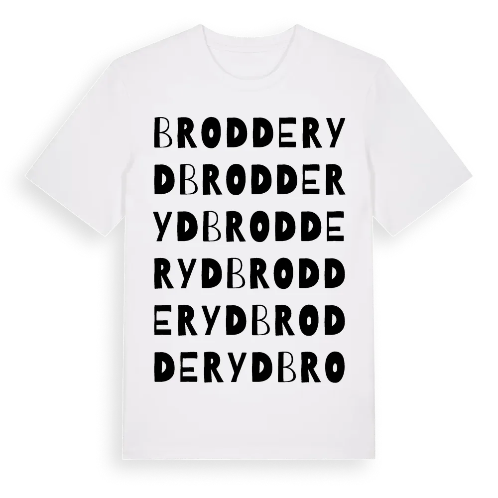 Brodderyd ordlek t-shirt är inspirerad av byn Brodderyd i Östergötlands län, Sverige. Tröjan är designad för dig som har en speciell koppling till platsen – oavsett om du bor här, har rötterna här eller bara älskar Brodderyd.