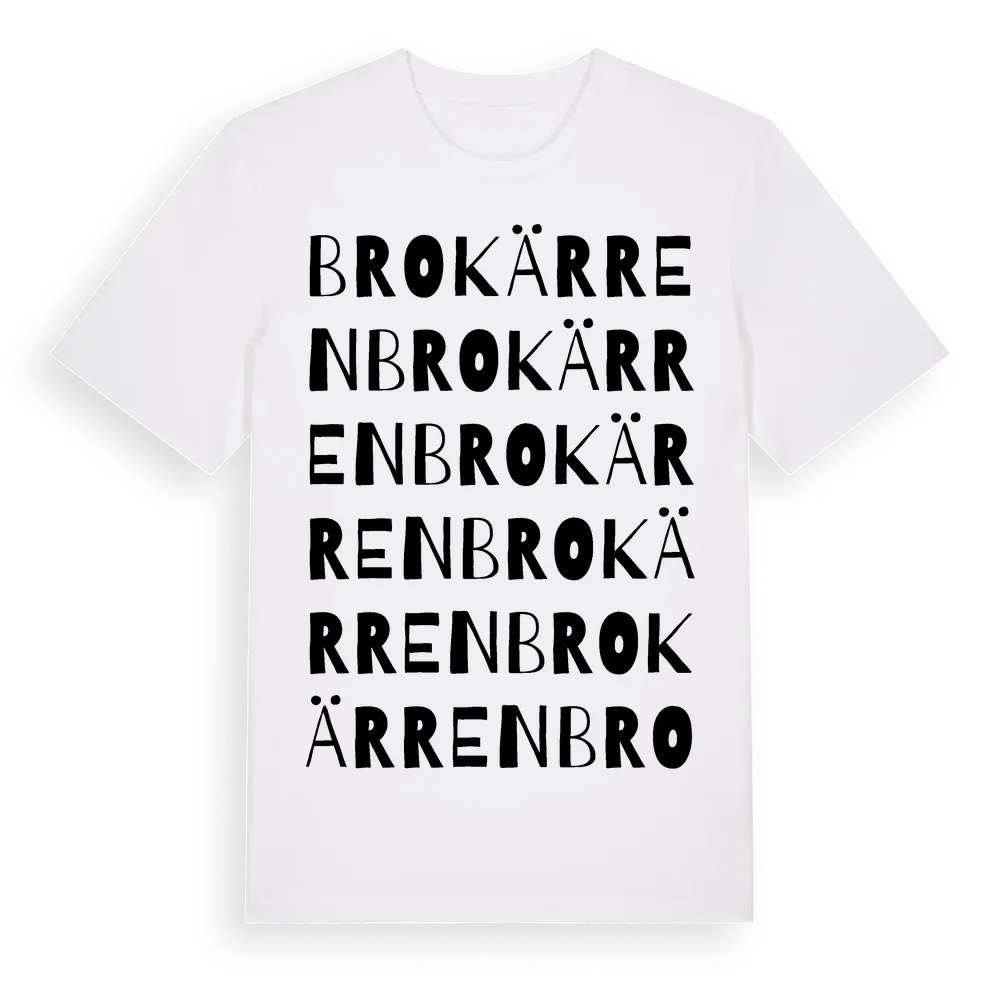 Brokärren ordlek t-shirt är inspirerad av Brokärren i Östergötlands län, Sverige. Tröjan är designad för dig som har en speciell koppling till platsen – oavsett om du bor här, har rötterna här eller bara älskar Brokärren.