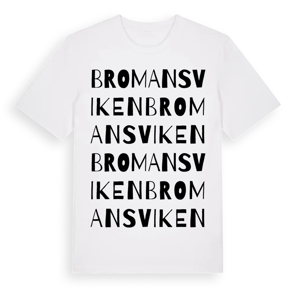 Bromansviken ordlek t-shirt är inspirerad av Bromansviken i Östergötlands län, Sverige. Tröjan är designad för dig som har en speciell koppling till platsen – oavsett om du bor här, har rötterna här eller bara älskar Bromansviken.
