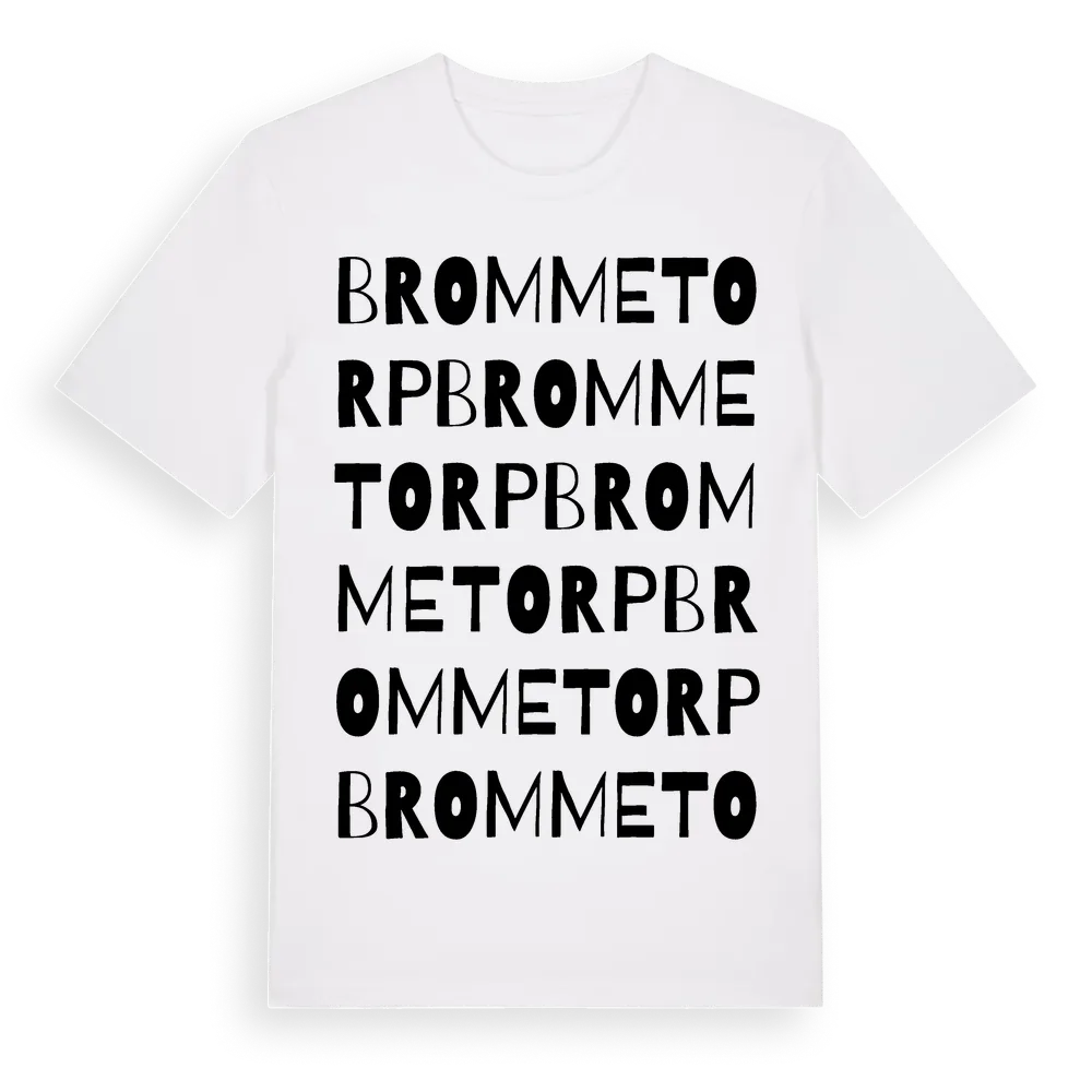 Brommetorp ordlek t-shirt är inspirerad av Brommetorp i Östergötlands län, Sverige. Tröjan är designad för dig som har en speciell koppling till platsen – oavsett om du bor här, har rötterna här eller bara älskar Brommetorp.