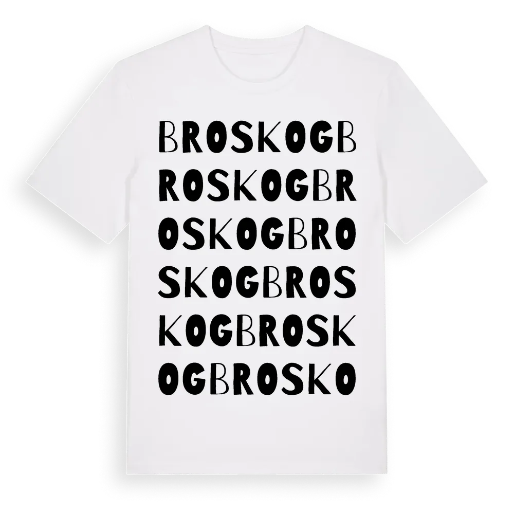 Broskog ordlek t-shirt är inspirerad av Broskog i Östergötlands län, Sverige. Tröjan är designad för dig som har en speciell koppling till platsen – oavsett om du bor här, har rötterna här eller bara älskar Broskog.