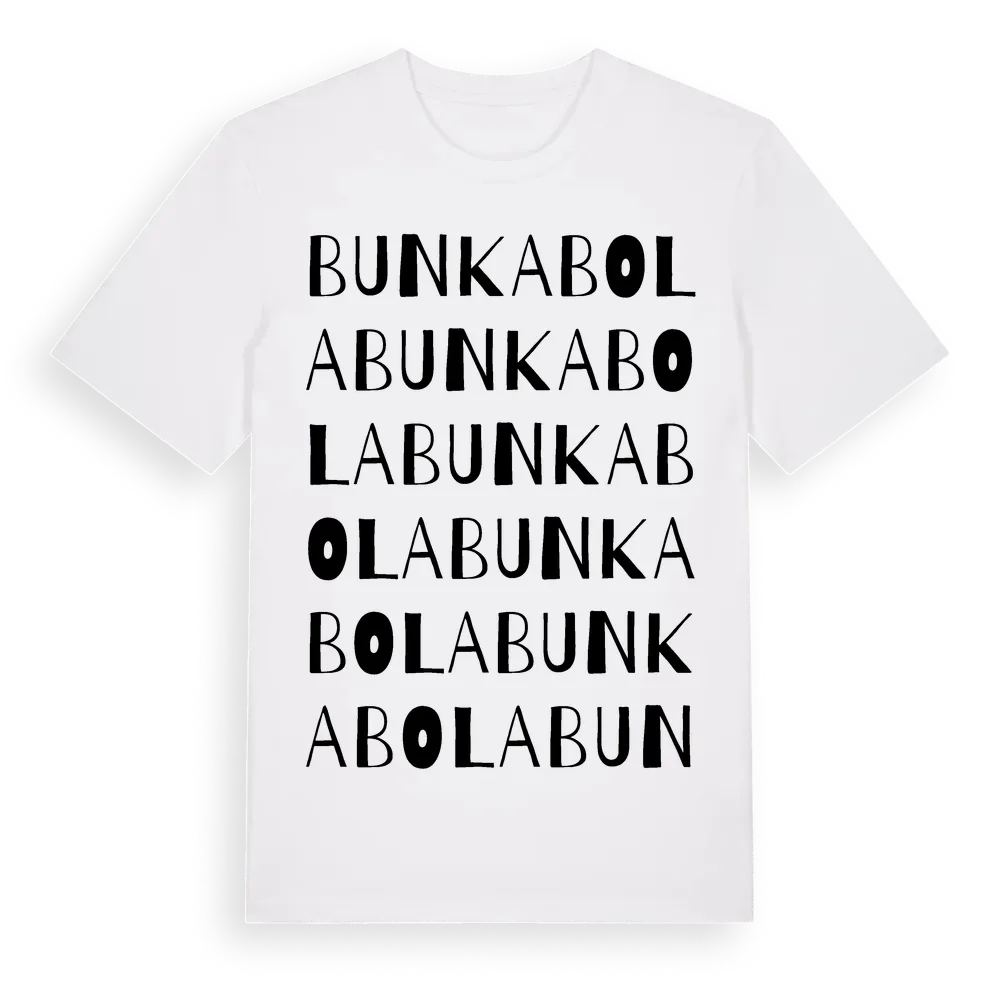 Bunkabola ordlek t-shirt är inspirerad av byn Bunkabola i Östergötlands län, Sverige. Tröjan är designad för dig som har en speciell koppling till platsen – oavsett om du bor här, har rötterna här eller bara älskar Bunkabola.