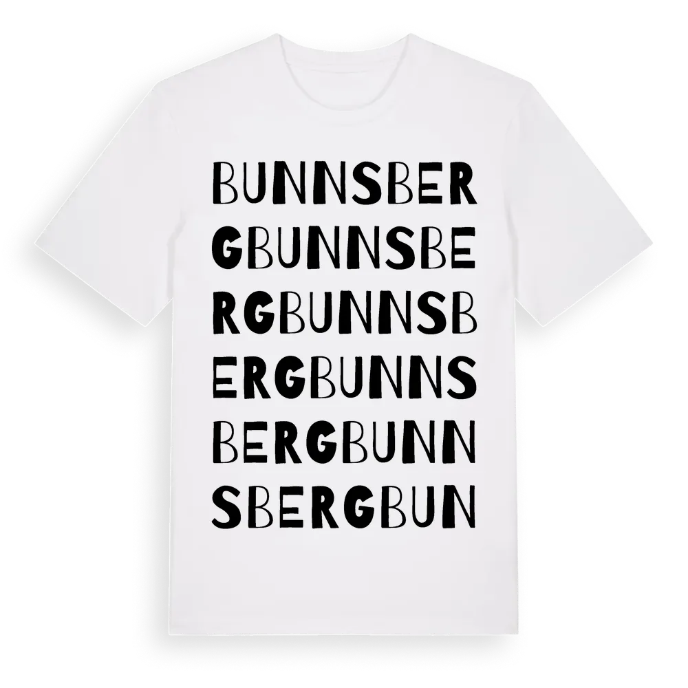 Bunnsberg ordlek t-shirt är inspirerad av byn Bunnsberg i Östergötlands län, Sverige. Tröjan är designad för dig som har en speciell koppling till platsen – oavsett om du bor här, har rötterna här eller bara älskar Bunnsberg.
